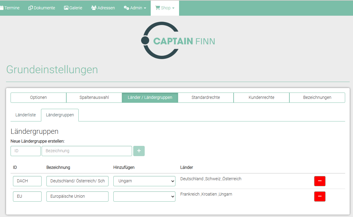 Grundeinstellungen - Länder/ Ländergruppen